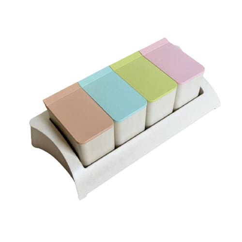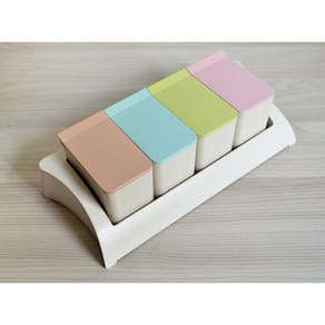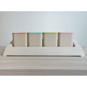 Conteúdo da Embalagem: 4 Potes 4 Colheres 1 Suporte Medidas aproximadas do produto - Comprimento: 11 cm - Altura: 17 cm - Largura: 35 cm - Peso: 400 g