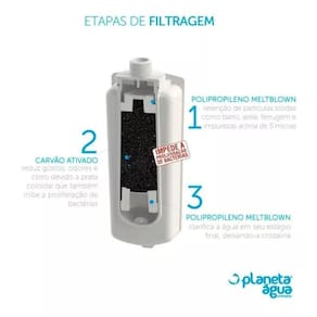 Kit com 3 unidades de refil. Este refil é aplicável com aparelhos Latina PA, Purimix, Puri Ice, Puritronic, PA 335 e PA 355. As marcas citadas são propriedades de seus respectivos fabricantes e aparecem apenas para demonstrar a compatibilidade deste produto. Características Técnicas Código:1008 Vida Útil: 3000 litros Vazão: 40 litros/hora Retenção de Partículas: Classe C 5 a 15 micra Dimensões da Embalagem: 234x65x89 mm Dimensões do Produto: 235x62x82 mm Peso Líquido: 0,278 kg Peso Bruto: 0,313 kg Temperatura de Operação: 1 a 40 C Pressão de Operação: 29 a 392 kPa 3 a 40 mca Código de Barras: 898931242063 1008 ; 7898614782084 1008A : 90 dias Com Redução de Cloro Livre Benefícios do Produto Fácil de instalar Absorve o cloro, retira sabores desagradáveis e reduz substâncias químicas e orgânicas Retém barro, areia, ferrugem e outras partículas acima de 5 micra Controla a proliferação de bactérias Bacteriostático Econômico 1 refil = 150 galões de 20 litros de água mineral ou 6000 garrafas pet de 500 ml Alta qualidade e custo baixo Marca: Não Informado Ean: 7898149665081