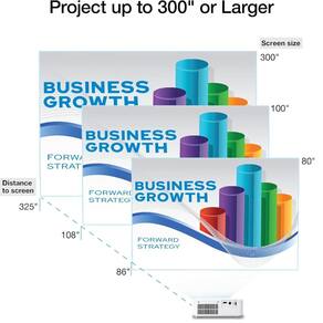 Tela Gigante de até 378 Polegadas: Transforme qualquer parede em uma tela de cinema para uma experiência de visualização imersiva.