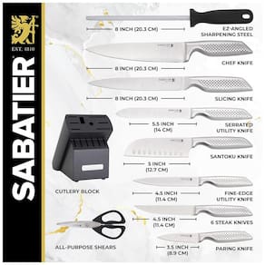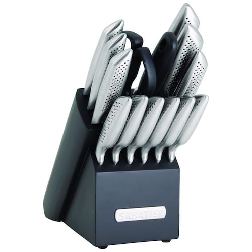 Conjunto de Facas em Aço Inoxidável com Bloco de Borracha, 15 Peças, Sabatier, Prata