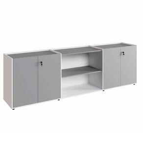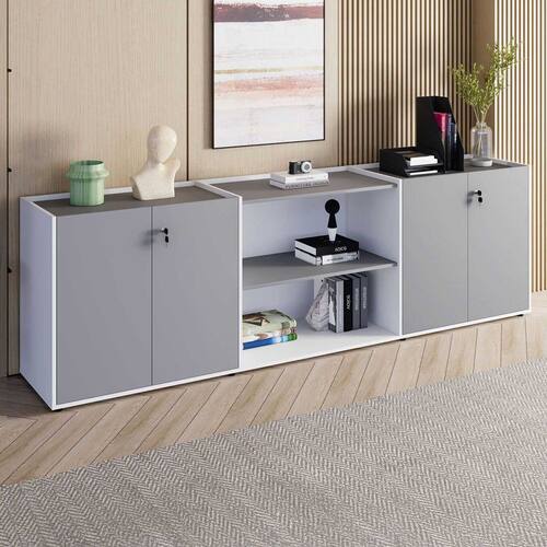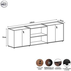 Armário F5 Office com 4 portas e nicho central, ideal para organizar documentos e materiais com praticidade e estilo. Com tampo embutido e design moderno, é perfeito para escritórios, recepções e salas de reunião.