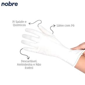 As luvas descartáveis de látex Nobre foram desenvolvidas para garantir segurança em atividades que envolvem contato com agentes químicos e sujeiras. Confeccionadas em borracha natural e com pó, são ambidestras, resistentes e fáceis de calçar. Produzidas em ambiente controlado, possuem baixa concentração de partículas no ar, atendendo normas internacionais de qualidade e proteção.