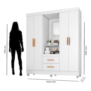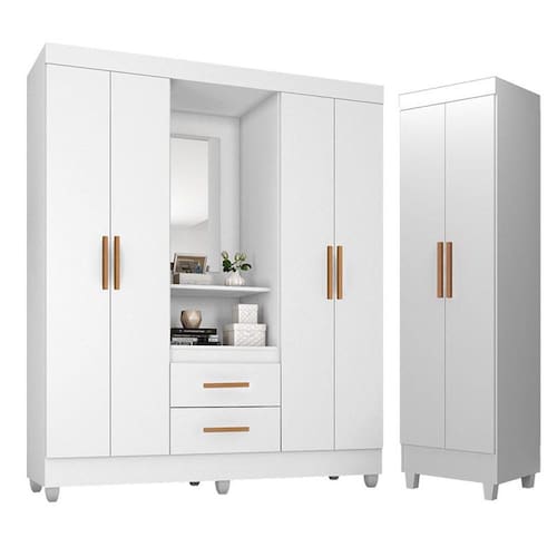 Guarda Roupa Casal Capela com Armário Multiuso Lite Branco Brilho - Móveis Leão