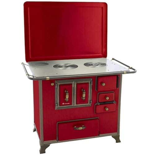 FOGÃO A LENHA VENÂNCIO BARROCO VERMELHO GABINETE N03 LADO ESQUERDO COM TAMPA 3BGETVR