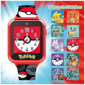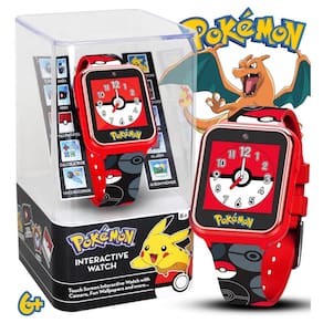 O smartwatch infantil Pokémon Poké Bola da Accutime é um relógio digital com tela sensível ao toque e interface temática inspirada na Poké Bola, desenvolvido para uso diário por crianças. A caixa plástica em vermelho e preto combina com mostrador digital em formato de Poké Bola e papel de parede correspondente, criando um visual integrado com o tema Pokémon.