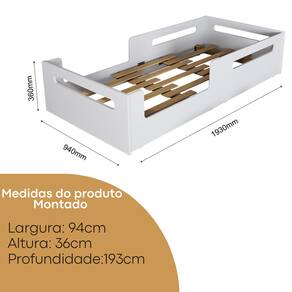 Comprimento: 193 cm Largura: 94 cm Altura da base até o chão: 36 cm