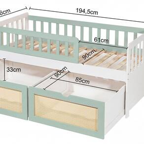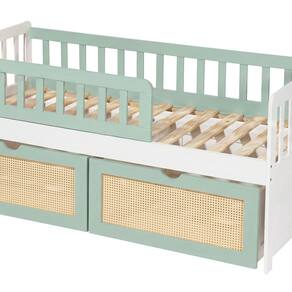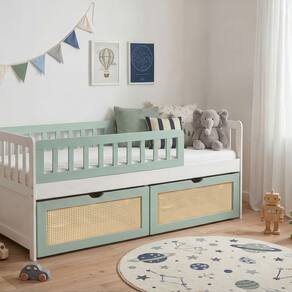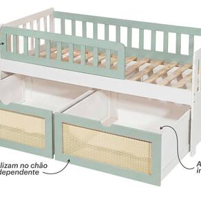 Cama de Solteiro Infantil com Dois Gavetões Madeira Maciça Lumi Branco/Verde