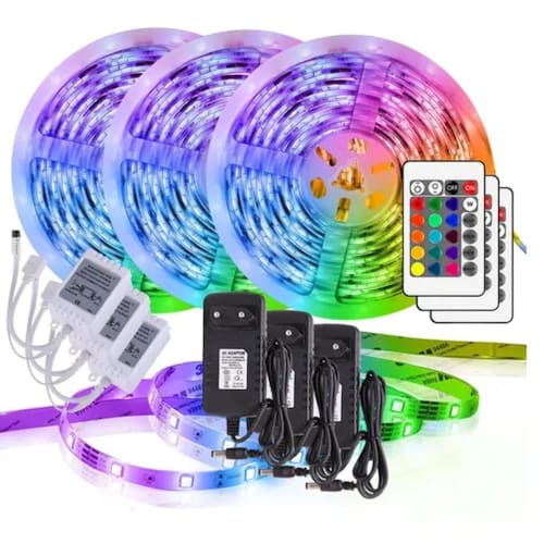 Fita led rgb colorida 5050 5m/10m/15m/20m/25m com proteção a prova d agua + controladora + controle O produto mais utilizado por arquitetos e decoradores para decorar casas, lojas, prédios residenciais e comercio de todo o brasil, tem a melhor relação custo benefício entre os produtos natalinos para enfeite de áreas externas e internas. Decora fachadas de imóveis, árvores, casas, lojas, montagem de personagens, vitrines, automotivo etc. Fácil manuseio e muito flexível pode ser enrolada em árvores, postes e plantas. Características: - baixíssimo consumo até 95% de economia - longa vida útil, chegando em até 50.000 horas - não transmite calor - fita adesiva dupla face 3m - flexível - possui 16 cores diferentes, com cores vivas e intensas - controle com 4 modos: flash, strobo, fade, smooth Informações técnicas: - led: rgb smd 5050 - taxas à prova d'água: ip65 - quantidade de led: 300 leds em 5 metros ou 60 leds por metro - comprimento da fita: 5m 10m 15m 20m 25m 30m - selecionar a metragem que você quiser. - ângulo de visão: 120 - tensão de entrada de trabalho: 12v dc - corrente de trabalho/metro: 0,4a - temperatura de trabalho: -20c a 50c - comprimento da fita: 5 metros // 10 metros // 15 metros // 20 metros // 25 metros. Observações: - é possível cortar a fita na indicação, porém lembramos que a fita sendo cortada perderá sua . - não recomendamos uso para mais de 10m em uma fonte 2a, podendo queimar por uma sobrecarga. Itens inclusos: - 5m - 1 rolo de fita led 5m 5050 / 1 - controle / 1 - controladora/ 1- fonte 2a - 10m - 2 rolos de fita led 5m 5050 / 2 - controles / 2 - controladora/1- fonte 2a - 15m - 3 rolos de fita led 5m 5050 / 3 - controles / 3 - controladora/3- fonte 2a - 20m - 4 rolos de fita led 5m 5050 / 4 - controles / 4 - controladora/4- fonte 2a - 25m - 5 rolos de fita led 5m 5050 / 5 - controles / 5 - controladora 5- fonte 2a Marca: Não Informado
