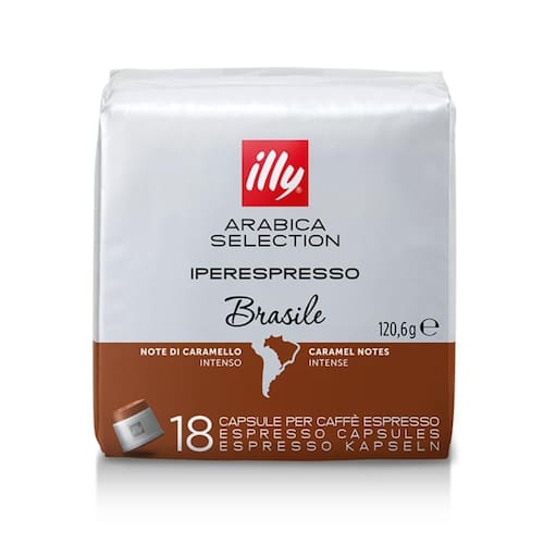 As cápsulas IperEspresso illy permitem que você prepare um café extraordinário em casa com facilidade e praticidade. Cada cápsula contém café 100% arábica, perfeitamente torrado e moído, de cultivo 100% sustentável. O resultado é um autêntico café italiano equilibrado, encorpado, cremoso e nunca amargo. O sistema de cápsulas IperEspresso faz um café espresso com qualidade e facilidade. O sistema de cápsulas iperEspresso usa um processo patenteado de dois estágios para criar um espresso aromático e encorpado com uma crema rica e duradoura. Descubra os cafés das melhores origens do mundo. A torra de cada origem é especialmente calibrada para realçar as notas aromáticas naturais e o perfil de sabor do café. Sobre as cápsulas illy Iperespresso - Café de alta qualidade, conhecido no mundo inteiro pela sua excelência. - Produto , fabricado na Itália. - Uma das melhores e mais famosas marcas de café do mundo. - Café com uma crema maior e mais duradoura. Conteúdo 1 pacotes de 18 cápsulas. Totalizando 18 cápsulas. Sabor Brasil Intenso e saboroso, com notas de caramelo. A torrefação desta origem é especialmente calibrada para aprimorar as notas aromáticas naturais e o perfil de sabor do café. Café 100% arábica. Dose: espresso. Sem açúcar. Modelos de cafeteiras compatíveis Estas cápsulas funcionam em todos os modelos de máquinas Iperespresso Illy. Atenção: essas cápsulas não funcionam nas cafeteiras Dolce Gusto, Três Corações, Delta e Nespresso. Essas marcas usam outros modelos de cápsulas. Observações Validade: 2 Anos Fabricado na Itália.