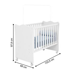 O berço é feito em MDP 15mm, grades fixas feitas em MDF de 12mm e 25mm. Acompanha kit de rodízios para facilitar o manuseio do produto
