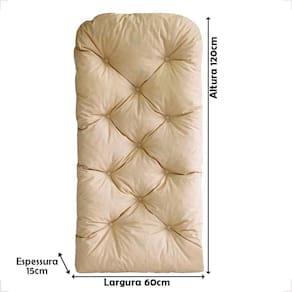 Dimensões: 120cm de comprimento, 60cm de largura e 15cm de altura.