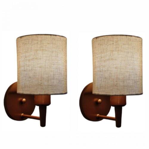 Compre! Kit/2 Arandela de Cabeceira e Camarim Md-2009 Base Cobre Cúpula em Tecido 14x15cm Rustico Bege - Bivolt