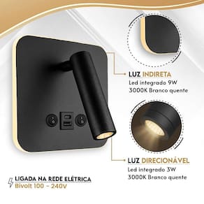 - O grande diferencial está na sua entrada USB e USB-C integradas, que permitem carregar seus dispositivos móveis com facilidade, diretamente na arandela - ideal para quem busca praticidade no dia a dia.