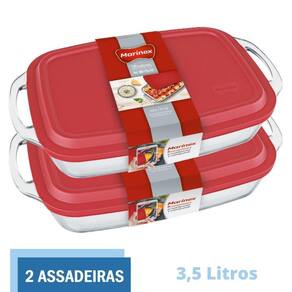 2 Assadeiras 3,5 Litros Retangular com Tampa Marinex Nadir Figueiredo