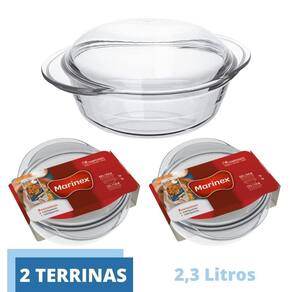 Itens inclusos: 2 Assadeiras Terrina 2,3 Litros sendo a Base com 1,5 Litros e Tampa com 800ml Marinex Nadir Figueiredo com as respectivas descrições acima.