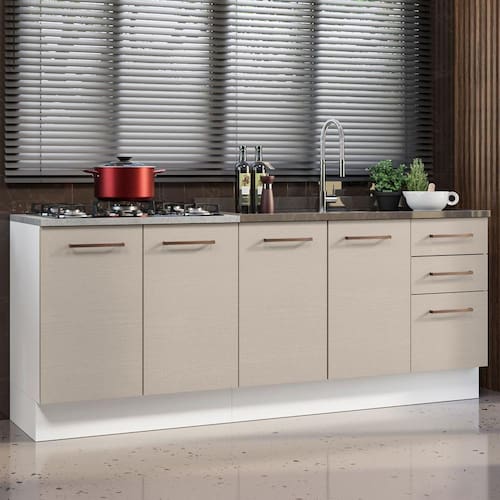 Código do produto: GRAG2000015LCOR: Crema | Garantia: 3 meses contra defeitos de fabricação | Dimensões - Altura: 84 cm | Dimensões - Largura: 200 cm | Dimensões - Profundidade: 52 cm | Produto: Cozinha | Marca: Madesa | Peso aproximado: 73 kg | Material: MDP | RBN: Casa/Móveis/Móveis de Cozinha | Estado de Origem: RS | Material para Filtro: MDP | Conteúdo da embalagem: 1 Cozinha Completa | Instruções/Cuidados: Utilize um pano limpo, levemente umedecido e seque em seguida a superfície. Não usar produtos químicos ou abrasivos para a limpeza. Recomendamos polir seu móvel com lustra-móveis duas a três vezes por ano. | Quantidade de gavetas: 3 | Quantidade de portas: 4 | Produto precisa de Montagem?: Sim | Inclui tampo: Não | Altura do Produto com Embalagem (cm): 39.20 | Largura Produto Com Embalagem (cm): 53.8 |