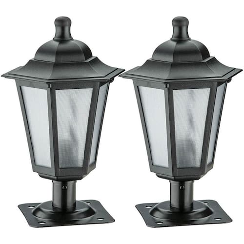 Garantia: 90 dias / Peso total: 1,450kg / Cor predominante: preto / Ref.: 7794463073253; Dimensões de cada balizador: 18cm (C) x 18cm (L) x 31cm (A); Soquete: E27, não acompanha lâmpada; Materiais: polipropileno e alumínio; Potência: até 20W; Voltagem: bivolt; Conteúdo: 2 balizadores de muro.