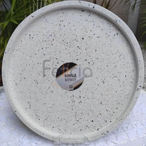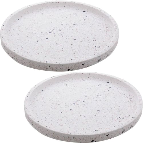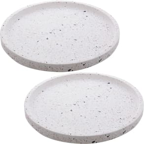Garantia: 90 dias / Peso: 4,400kg / Cor predominante: branco / Referência: 7798139704366 Conteúdo: 2 bandejas redondas decorativas; Dimensões de cada bandeja: 30cm (D) x 2,5cm (A); Área de uso de cada bandeja: 27,5cm (D) x 1cm (A); Modelo: Terrazzo; Material: mármore.