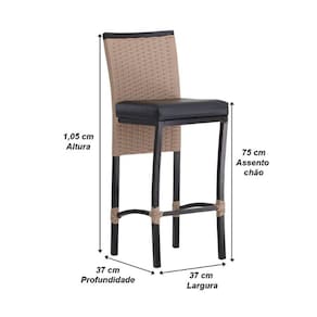 Dimensões: Altura total: 105 cm Altura assento ao chão: 75 cm Largura: 37 cm Profundidade: 37 cm Suporta até 170 kg
