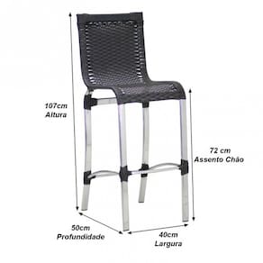 Especificações Técnicas: Altura total: 107 cm Altura assento ao chão: 71cm Largura: 39cm Profundidade: 49,5 cm Suporta até 170 kg