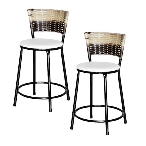 2 Banquetas Baixas Para Cozinha Ratan Hawai Cappuccino Premium - Branco