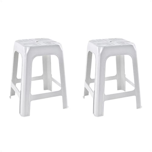 2 Banquetas Banco Plástico Resistente Branco Empilhável 46Cm