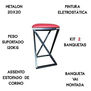 2 Banquetas Gourmet Baixa Quadrada Cozinha Casa Bar Ferro Vermelho