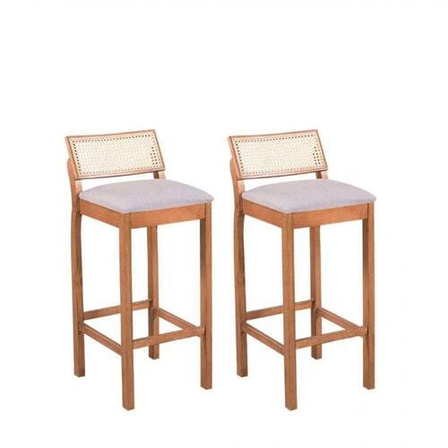 2 Banquetas Helena Em Madeira Maciça E Encosto Tela Bege 2 Banquetas Helena em Madeira Macica e Encosto com Tela Facilita Decor Caracteristicas: Estrutura em Madeira Macica Cinamomo Assento estofado com espuma de densidade D-23; Encosto de madeira com tela Rattan ; Ideal para espaco gourmet, sala de estar e outros ambientes; Madeira Ecologicamente Correta; Baseado em conceitos sustentaveis; Madeira altamente resistente; Design moderno e diferenciado Tecidos disponiveis: Linho Bege