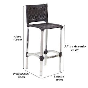 2 Banquetas Madri em Alumínio para Edícula Cozinha Balcão Área Trama - Preto