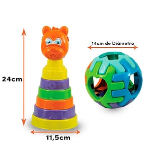Conheça nosso ursinho com 06 anéis coloridos para empilhar e uma bola cheia de surpresas, com 6 formas geométricas diferentes É a combinação perfeita de aprendizado e brincadeira. Vamos transformar cada momento em uma aventura divertida