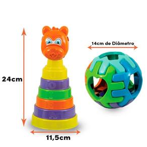 Conheça nosso ursinho com 06 anéis coloridos para empilhar e uma bola cheia de surpresas, com 6 formas geométricas diferentes É a combinação perfeita de aprendizado e brincadeira. Vamos transformar cada momento em uma aventura divertida
