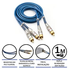 2 Cabo RCA Prime Plug 1 Metro 5mm Transparente Azul Metal