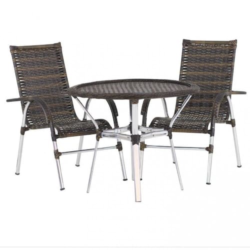 2 Cadeiras Alumínio E Mesa Tampo Tramado Área Piscina Jardim - Bege