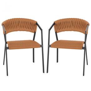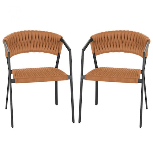 2 Cadeiras Atenas Tricô Náutico e Alumínio com Proteção UV para Varanda, Cozinha, Área, Jardim - Pintura Preta - Laranja