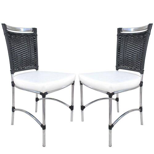 2 Cadeiras De Jantar Jk Para área Interna E Externa Em Alumínio E Assento Impermeável - Preta