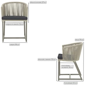 Antes de comprar o seu produto verifique as medidas, o onde pretende instalar e se necessario contratar o servico de um qualificado. Produto conhecido como: Cadeira Noronha, Cadeira de aluminio, Corda nautica, Estofado impermeavel, Moveis de exterior, Cadeira resistente a agua, Design moderno em Cadeira, Cadeira para area externa, Cadeira de jardim, Moveis para varanda, Cadeira duravel, Cadeira de alta qualidade, Conforto em Cadeira, Cadeira elegante.