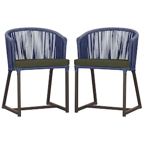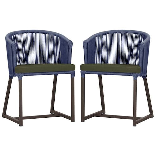 2 Cadeiras De Jantar Noronha Marrom Corda Náutica E13 Trama Azul
