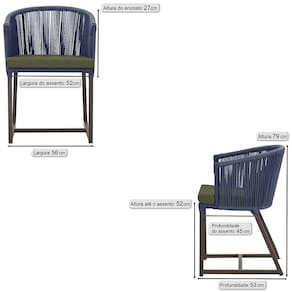 Antes de comprar o seu produto verifique as medidas, o onde pretende instalar e se necessario contratar o servico de um qualificado. Produto conhecido como: Cadeira Noronha, Cadeira de aluminio, Corda nautica, Estofado impermeavel, Moveis de exterior, Cadeira resistente a agua, Design moderno em Cadeira, Cadeira para area externa, Cadeira de jardim, Moveis para varanda, Cadeira duravel, Cadeira de alta qualidade, Conforto em Cadeira, Cadeira elegante.