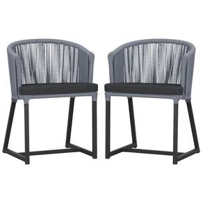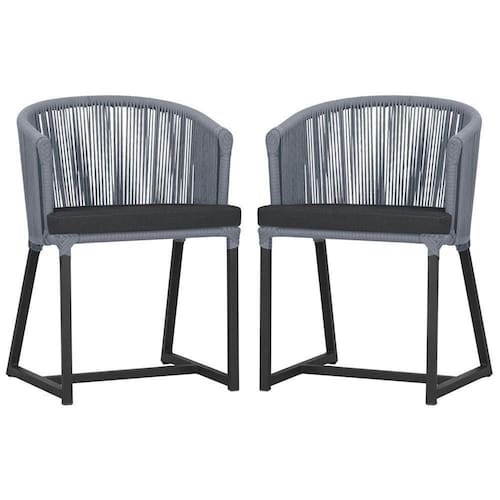 2 Cadeiras De Jantar Noronha Preta Corda Náutica E11 Trama Prata