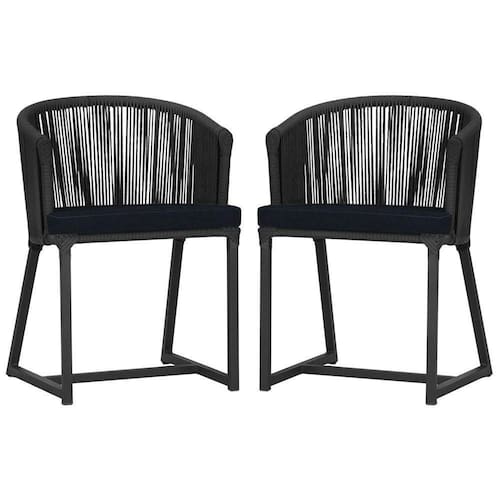 2 Cadeiras De Jantar Noronha Preta Corda Náutica E12 Trama Preto