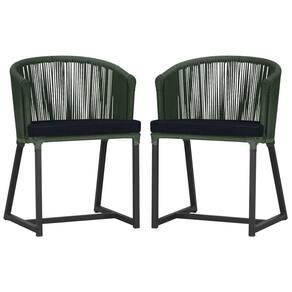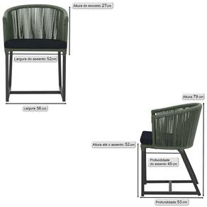 2 Cadeiras De Jantar Noronha Preta Corda Náutica E12 Trama Verde