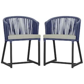 2 Cadeiras De Jantar Noronha Preta Corda Náutica E3 Trama Azul