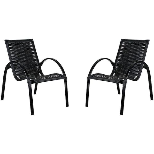 2 Cadeiras Garden Em Alumínio Pintado Para área Externa Fibra Sintética Acesse Móveis Preto