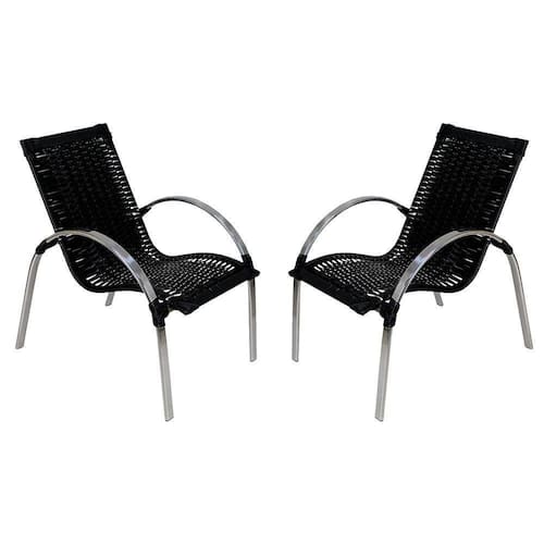 2 Cadeiras Garden Em Alumínio Polido Para área Externa Fibra Sintética Acesse Móveis Preto
