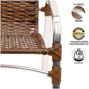 Jogo de Cadeiras Emily - TRAMA Ideal para área externa, este kit compõe qualquer ambiente, com um designer moderno e leve, garante conforto e praticidade.Itens inclusos: 2 Cadeiras.- Cadeiras fabricadas em alumínio polido e revestida em fibra .Mais leve e resistente do que o Ferro, o Alumínio também pode ser molhado, pois não enferruja, a durabilidade cerca de 8 a 10 anos.Ambiente: Interno e externo, pode ficar exposto ao sol e chuva.Nossos produtos são de altíssima qualidade, leve e com design moderno, garantindo assim conforto e praticidade para seu bem-estar.Essa característica oferece resistência suficiente para o móvel ser utilizado em decorações de ambientes externos.Combinação em vários ambientes com traços modernos e clássicos, para todos os gostos!ALUMÍNIO MAIS RESISTENTE DO QUE FERRO, NÃO ENFERRUJA E MAIOR DURABILIDADE!Especificação do produto.- Estrutura: Alumínio, não enferruja;- Solda: Solda TIG, de alta resistência,- Acabamento: Fibra com UV Protection;Fibra especial - Sua proteção UV proporciona maior durabilidade, resistente ao Sol e Chuva com proteção UV, a fibra da Trama /UP Mobille é produzida com materiais de altíssima qualidade.Peso Máximo indicado: 140 Kg.GARANTIA: 1 ano de fábrica.FABRICANTE: TRAMA Nossos produtos são ideias para decorar ambientes clássicos e modernos, interno e externo como: Cozinha, Sala, Quarto, Varanda, Sacada, Edícula, Área de Piscina, Jardim, Área de lazer, Festa, Reunião, Churrasco, Área Gourmet, Recepção, Sala de espera, Sala de Filmes entre outros.Fácil de Limpar Utilize Sabão Neutro para a limpeza das fibras e estruturas.Passe um pouco com um pano macio, logo em seguida, passe outro pano macio, porém seco. Deixando assim, com o brilho novamente!.....TGA - Você também pode buscar por - Conjunto de área, cadeira de alumínio, cadeira de área, cadeira para piscina, cadeira para área de piscina, cadeira pintada, cadeira com pintura, cadeira para sacada, cadeira para sol, cadeira para varanda, cadeira gourmet, cadeira artesanal, kit de cadeiras, combo de cadeiras, cadeiras artesanais, cadeiras de fibra, cadeira de junco, cadeiras de móveis artesanais, cadeira , jogo de cadeiras, cadeira resistente, cadeira vime, trama móveis, tramar cadeiras, mesa alta, mesa com , mesa ripado, , central, para área de festa, sombreiro, guarda sol.