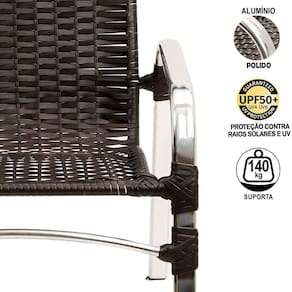 Jogo de Cadeiras Emily - TRAMA Ideal para área externa, este kit compõe qualquer ambiente, com um designer moderno e leve, garante conforto e praticidade.Itens inclusos: 2 Cadeiras.- Cadeiras fabricadas em alumínio polido e revestida em fibra sintética.Mais leve e resistente do que o Ferro, o Alumínio também pode ser molhado, pois não enferruja, a durabilidade cerca de 8 a 10 anos.Ambiente: Interno e externo, pode ficar exposto ao sol e chuva.Nossos produtos são de altíssima qualidade, leve e com design moderno, garantindo assim conforto e praticidade para seu bem-estar.Essa característica oferece resistência suficiente para o móvel ser em decorações de ambientes externos.Combinação em vários ambientes com traços modernos e clássicos, para todos os gostos!ALUMÍNIO MAIS RESISTENTE DO QUE FERRO, NÃO ENFERRUJA E MAIOR DURABILIDADE!Especificação do produto.- Estrutura: Alumínio, não enferruja;- Solda: Solda TIG, de alta resistência,- Acabamento: Fibra sintética com UV Protection;Fibra Sintética especial - Sua proteção UV proporciona maior durabilidade, resistente ao Sol e Chuva com proteção UV, a fibra sintética da Trama /UP Mobille é produzida com materiais de altíssima qualidade.Peso Máximo indicado: 140 Kg.GARANTIA: 1 ano de fábrica.FABRICANTE: TRAMA Nossos produtos são ideias para decorar ambientes clássicos e modernos, interno e externo como: Cozinha, Sala, Quarto, Varanda, Sacada, Edícula, Área de Piscina, Jardim, Área de lazer, Festa, Reunião, Churrasco, Área Gourmet, Recepção, Sala de espera, Sala de Filmes entre outros.Fácil de Limpar Utilize Sabão Neutro para a limpeza das fibras e estruturas.Passe um pouco com um pano macio, logo em seguida, passe outro pano macio, porém seco. Deixando assim, com o brilho novamente!.....TGA - Você também pode buscar por - Conjunto de área, cadeira de alumínio, cadeira de área, cadeira para piscina, cadeira para área de piscina, cadeira pintada, cadeira com pintura, cadeira para sacada, cadeira para sol, cadeira para varanda, cadeira gourmet, cadeira artesanal, kit de cadeiras, combo de cadeiras, cadeiras artesanais, cadeiras de fibra, cadeira de junco, cadeiras de móveis artesanais, cadeira sintética, jogo de cadeiras, cadeira resistente, cadeira vime, trama móveis, tramar cadeiras, mesa alta, mesa com tampo, mesa ripado, ombrelone, ombrelone central, para área de festa, sombreiro, guarda sol.