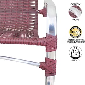 Jogo de Cadeiras Emily - TRAMA Ideal para área externa, este kit compõe qualquer ambiente, com um designer moderno e leve, garante conforto e praticidade.Itens inclusos: 2 Cadeiras.- Cadeiras fabricadas em alumínio polido e revestida em fibra sintética.Mais leve e resistente do que o Ferro, o Alumínio também pode ser molhado, pois não enferruja, a durabilidade cerca de 8 a 10 anos.Ambiente: Interno e externo, pode ficar exposto ao sol e chuva.Nossos produtos são de altíssima qualidade, leve e com design moderno, garantindo assim conforto e praticidade para seu bem-estar.Essa característica oferece resistência suficiente para o móvel ser utilizado em decorações de ambientes externos.Combinação em vários ambientes com traços modernos e clássicos, para todos os gostos!ALUMÍNIO MAIS RESISTENTE DO QUE FERRO, NÃO ENFERRUJA E MAIOR DURABILIDADE!Especificação do produto.- Estrutura: Alumínio, não enferruja;- Solda: Solda TIG, de alta resistência,- Acabamento: Fibra sintética com UV Protection;Fibra Sintética especial - Sua proteção UV proporciona maior durabilidade, resistente ao Sol e Chuva com proteção UV, a fibra sintética da Trama /UP Mobille é produzida com materiais de altíssima qualidade.Peso Máximo indicado: 140 Kg.GARANTIA: 1 ano de fábrica.FABRICANTE: TRAMA Nossos produtos são ideias para decorar ambientes clássicos e modernos, interno e externo como: Cozinha, Sala, Quarto, Varanda, Sacada, Edícula, Área de Piscina, Jardim, Área de lazer, Festa, Reunião, Churrasco, Área Gourmet, Recepção, Sala de espera, Sala de Filmes entre outros.Fácil de Limpar Utilize Sabão Neutro para a limpeza das fibras e estruturas.Passe um pouco com um pano macio, logo em seguida, passe outro pano macio, porém seco. Deixando assim, com o brilho novamente!.....TGA - Você também pode buscar por - Conjunto de área, cadeira de alumínio, cadeira de área, cadeira para piscina, cadeira para área de piscina, cadeira pintada, cadeira com pintura, cadeira para sacada, cadeira para sol, cadeira para varanda, cadeira gourmet, cadeira artesanal, kit de cadeiras, combo de cadeiras, cadeiras artesanais, cadeiras de fibra, cadeira de junco, cadeiras de móveis artesanais, cadeira sintética, jogo de cadeiras, cadeira resistente, cadeira vime, trama móveis, tramar cadeiras, mesa alta, mesa com tampo, mesa ripado, ombrelone, ombrelone central, para área de festa, sombreiro, guarda sol.