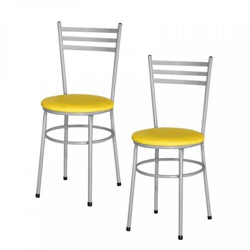2 Cadeiras Epoxi Prata Para Cozinha Amarelo