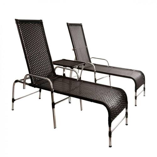 2 Cadeiras Espreguiçadeiras E Mesa Confortável Para Piscina Preto