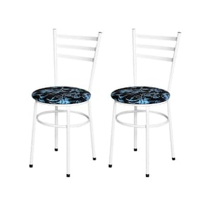 2 Cadeiras Para Mesa Epoxi Branca Assento Estampado Cor:floral Preto - Blush